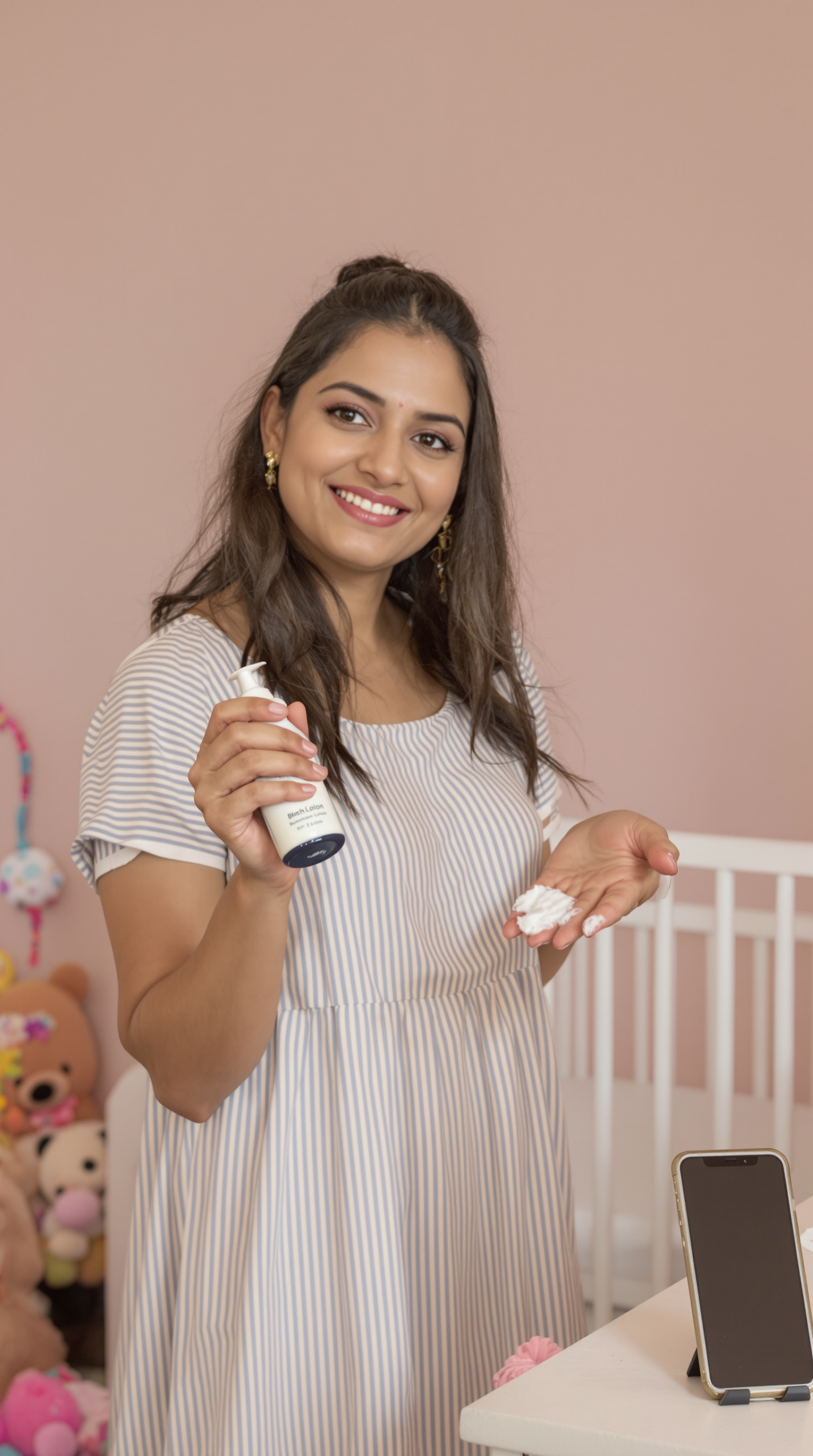 Our AI creates a realistic person in a real-looking setting, holding your product naturally. The person, the room, the lighting — everything is generated. No stock photos, no real models needed.